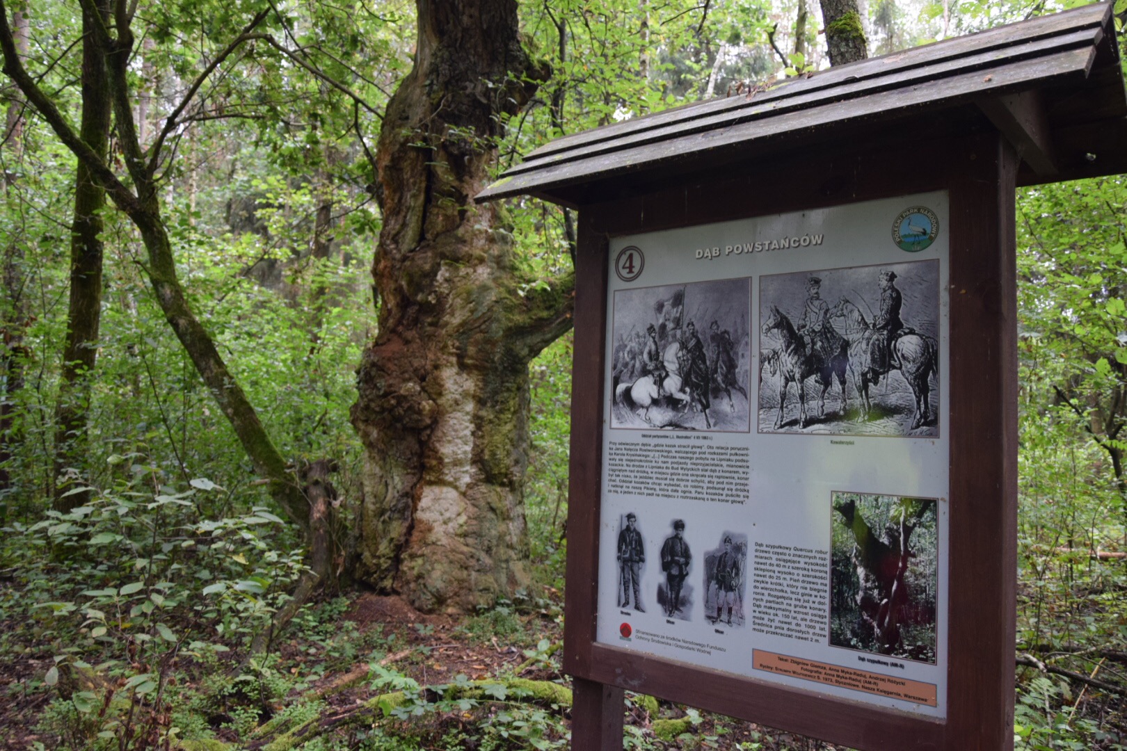 Kolejna ścieżka choć wyrwała nam trochę więcej kilometrów „na bok”, nie była aż tak atrakcyjna, aczkolwiek mieliśmy okazję przejechać przez miejsce, gdzie w czasie powstania styczniowego stał obóz powstańczy. Odległa historia, śladów w terenie praktycznie brak, a mimo to świadomość tego faktu, wzmocniona kilkoma historycznymi tablicami, działała na wyobraźnię. Opuszczając powstańczy obóz, zdaliśmy sobie sprawę, że jest już południe, a my wciąż mamy większość trasy przed sobą… Tak nas bagna Poleskiego Parku Narodowego wciągnęły! Bez zwłoki obraliśmy zatem kurs na zachód do Lubartowa.