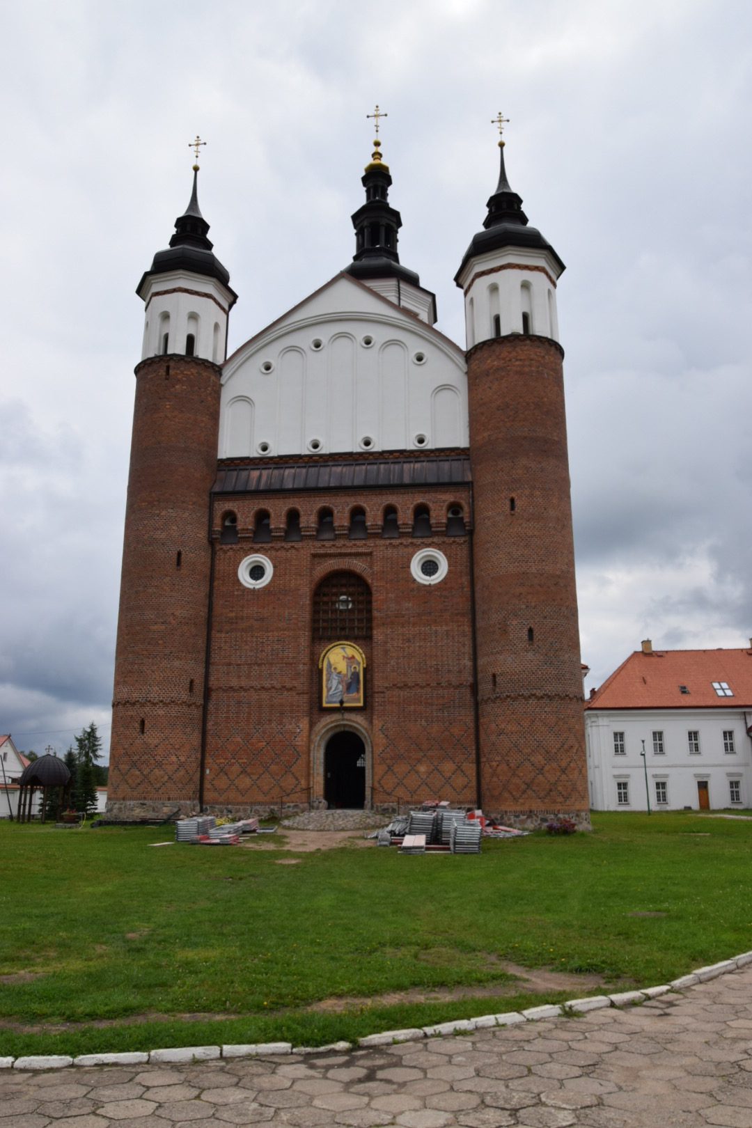 Żegnając świetnie przygotowane białostockie ścieżki rowerowe, z samego rana wyruszyliśmy w kierunku wschodniej granicy. Pierwszym punktem naszego dzisiejszego programu był Supraśl, do którego wystarczyło dosłownie zjechać (prawie 13 km z górki). To niewielkie, jakże malownicze miasteczko w połowie XIX wieku utrzymywało się głównie z włókiennictwa (kresem jego rozwoju była wojna i rok 1944). Dlatego też bywa nazywane „Łodzią w miniaturze”. Tym, co przyciąga turystów do miasteczka jest z pewnością Cerkiew Zwiastowania NMP, jedyna w Polsce gotycko-bizantyjska cerkiew obronna. Powstała w XVI wieku, była bogato zdobiona freskami i gdańskim, barokowym ikonostasem. Niestety, w 1944 roku Niemcy wysadzili cerkiew w powietrze. Z dawnej świetności nie zachowało się wiele – ocalały jedynie kolumny. Świątynię odbudowano po 1990 roku, jednak prace związane z wyposażaniem wnętrza potrwają jeszcze jakiś czas. Na terenie zabudowań klasztornych znajduje się także izba pamięci poświęcona Mironowi Chodakowskiemu, polskiemu arcybiskupowi prawosławnemu i ordynariuszowi Wojska Polskiego, generałowi brygady, który zginął w Smoleńsku. Kierował on bowiem monasterem w Supraślu, prowadząc jego odbudowę po wojnie i doprowadzając do ponownej organizacji męskiej wspólnoty monastycznej. Znalazł tu także miejsce spoczynku, gdyż został pochowany dokładnie pod cerkwią Zwiastowania NMP.