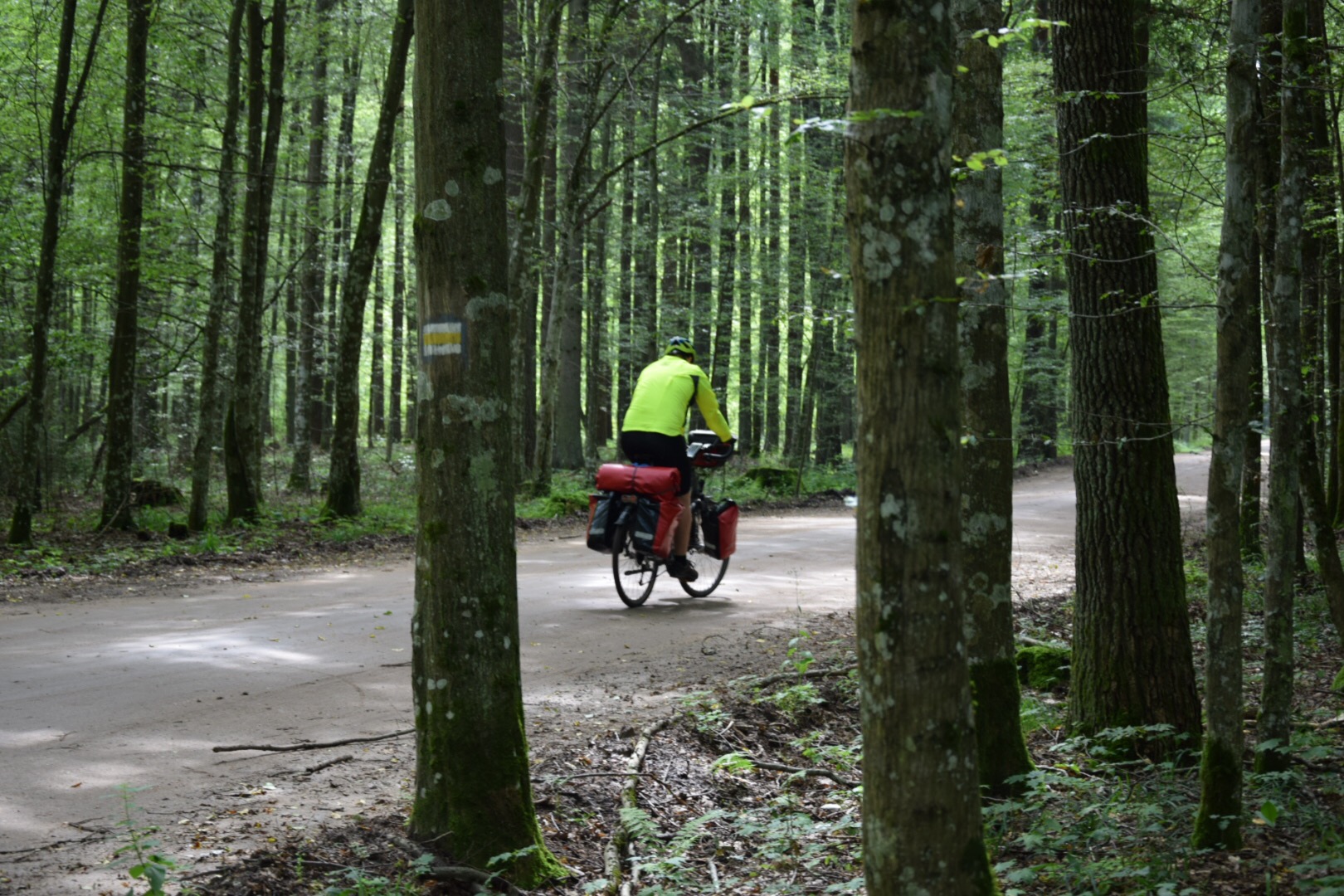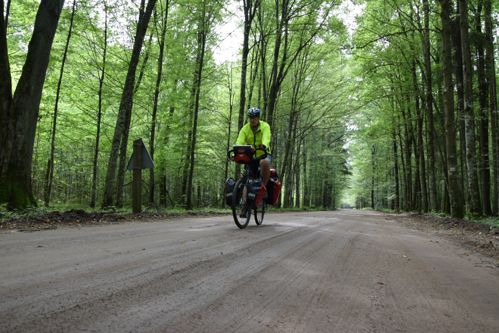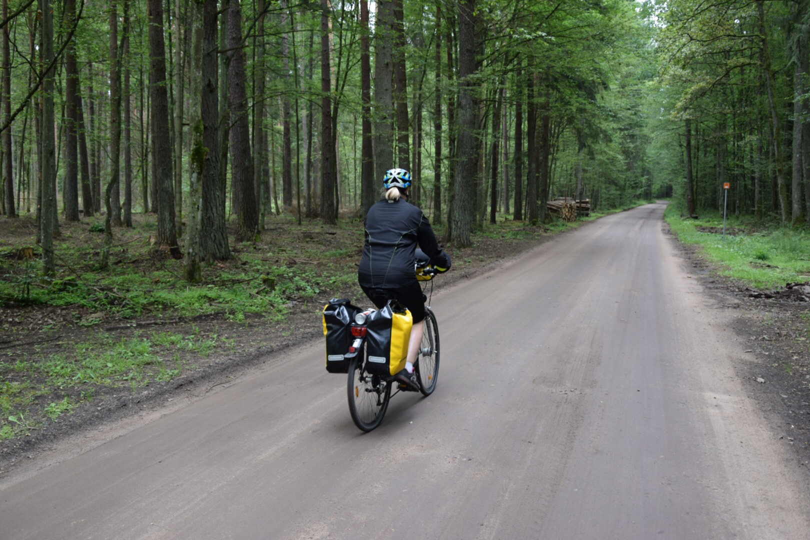 Zdecydowanie najciekawszy odcinek dzisiejszej trasy rozpoczął się, gdy opuszczaliśmy miejscowość Narewka i ujrzeliśmy znak „Uwaga! Kraina żubra!”. Po kilkuset metrach wjechaliśmy do puszczy, a tego, co tam zobaczyliśmy nawet zdjęcia nie oddadzą w pełni. Warto zaznaczyć, że wjechaliśmy do puszczy owszem chronionej jako otulina, ale nie będącej jeszcze „nawet” parkiem narodowym! „Łał! Jaki piękny las!” wyrwało się nam cicho, a potem przez pewien czas jechaliśmy już w zupełnym milczeniu, kontemplując jego piękno.