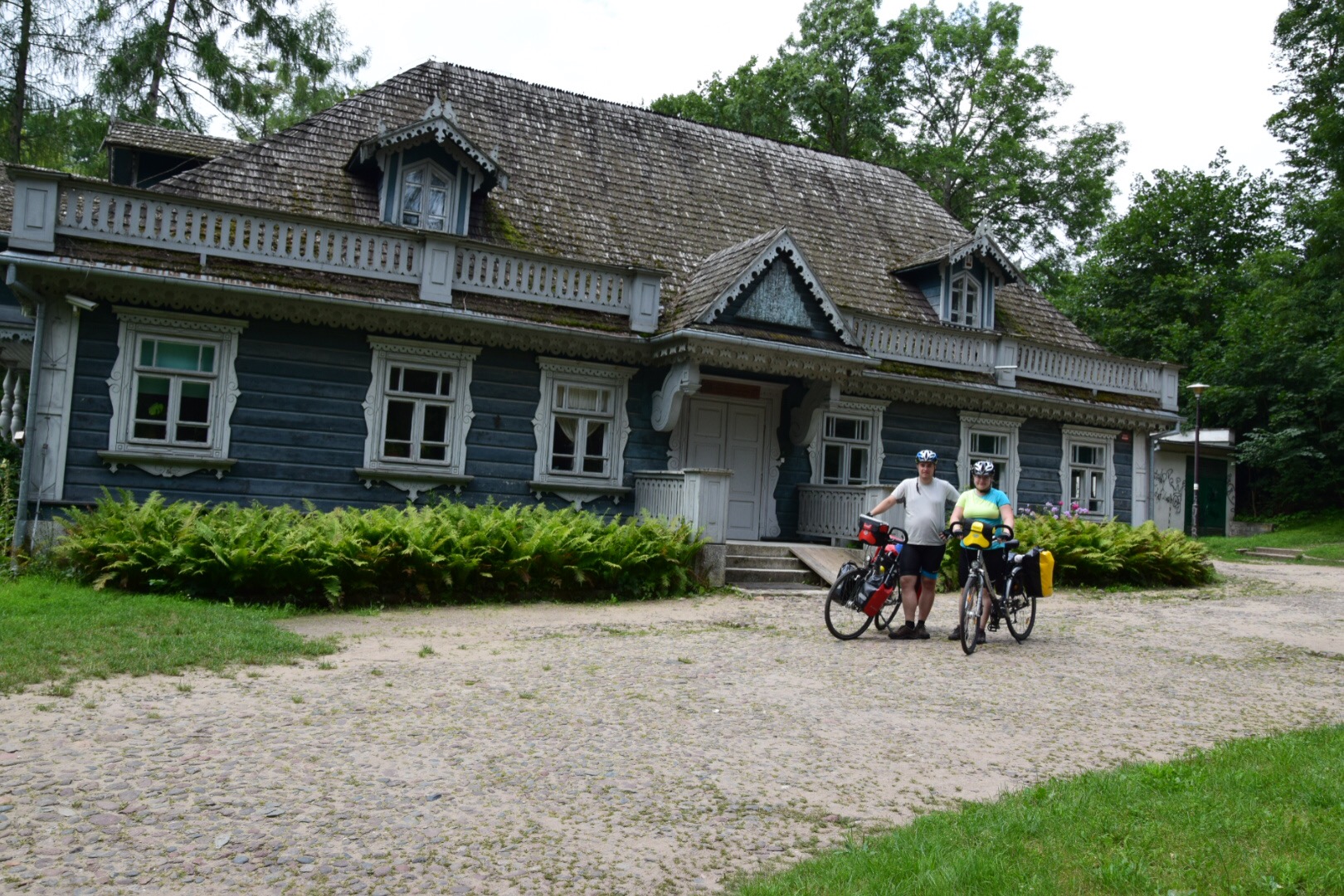 Do Białowieży dotarliśmy po ok. 20 km jazdy przez puszczę. Od razu skierowaliśmy nasze jednoślady do parku pałacowego, gdzie znajduje się dyrekcja parku narodowego i muzeum przyrodniczo-leśne. W muzeum obejrzeliśmy bardzo ciekawą wystawę pokazującą przekrojowo florę i faunę chronioną w Białowieskim Parku Narodowym – powołanym dla zachowania ostatniego pierwotnego lasu nizinnego w Europie. Do parku prowadzi kilka szlaków pieszych, ale do Obszaru Ochrony Ścisłej można wejść tylko w towarzystwie przewodnika, w zorganizowanej grupie (poza szlakami, w głąb puszczy można wejść tylko za specjalnym zezwoleniem w celach naukowych). Nie będziemy mieć raczej okazji na pieszy spacer w samym już parku, ale jutro przed wyjazdem w kierunku Hajnówki planujemy jeszcze odwiedzić Zagrodę Pokazową Żubrów.