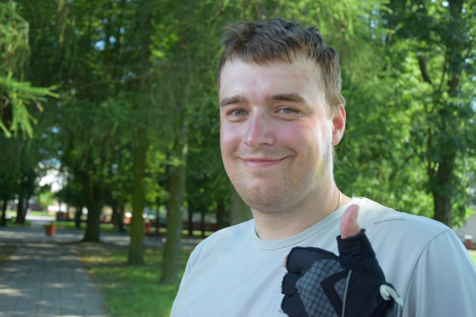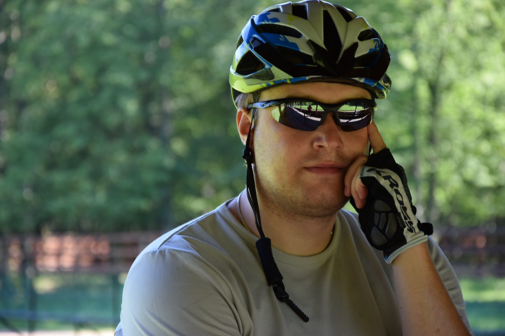 Z Hajnówki w środku dnia przyszło nam jechać ścieżką rowerową wzdłuż drogi wojewódzkiej 685 do Kleszczeli. Niestety, o cieniu mogliśmy przez ponad 20 kilometrów tylko pomarzyć… Pomimo, że jechaliśmy wzdłuż lasów, cień był po drugiej stronie jezdni… Dodatkowo pedałowania nie ułatwiał wiatr, który wiał wprost na nas przez 28 kilometrów! Nawet zjazdy pokonywaliśmy z lekkim oporem powietrza. Jednak bez wiatru byłoby dziś bardzo ciężko, przynosił orzeźwienie i chłodził nasze rozgrzane ciała na tej patelni… O wiele łatwiej mieli kolarze jadący z naprzeciwka (wiatr w plecki), których było sporo na tym odcinku, chociaż słońce to samo. 🙂