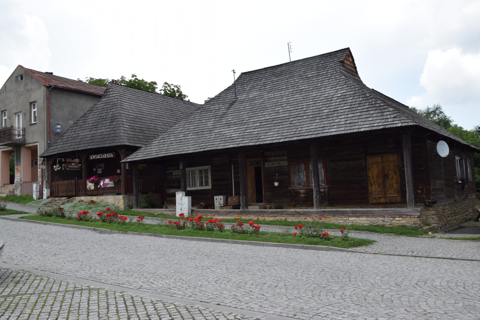 Z Zarzecza udaliśmy się w dalszą drogę do Pruchnika. Według naszej mapy i przewodnika miejscowość ta słynie z małomiasteczkowego układu urbanistycznego z nielicznymi zachowanymi charakterystycznymi domami drewnianymi z podcieniami. I faktycznie takie domy w „rynku” znaleźliśmy, ale prawdę mówiąc, gdybyśmy wiedzieli, ile tego jest i jakie jest sąsiedztwo (paskudne PRL-owskie budownictwo w miejscu zburzonych domów), to prawdopodobnie planowalibyśmy naszą trasę nieco inaczej. A tak, mając już kilkanaście minut po godzinie 16-tej, brak perspektyw na nocleg w okolicy i jeszcze odgłosy burzy w oddali, zaczęliśmy się zastanawiać… co dalej?! Ambitny plan na dziś zakładał zdobycie przyczółka tuż pod Przemyślem, ale to było jeszcze jakieś 20 kilometrów jazdy, na dodatek w części pod solidną górkę. Ten sam plan nie zakładał natomiast tego, że zabawimy tak długo w Jarosławiu…