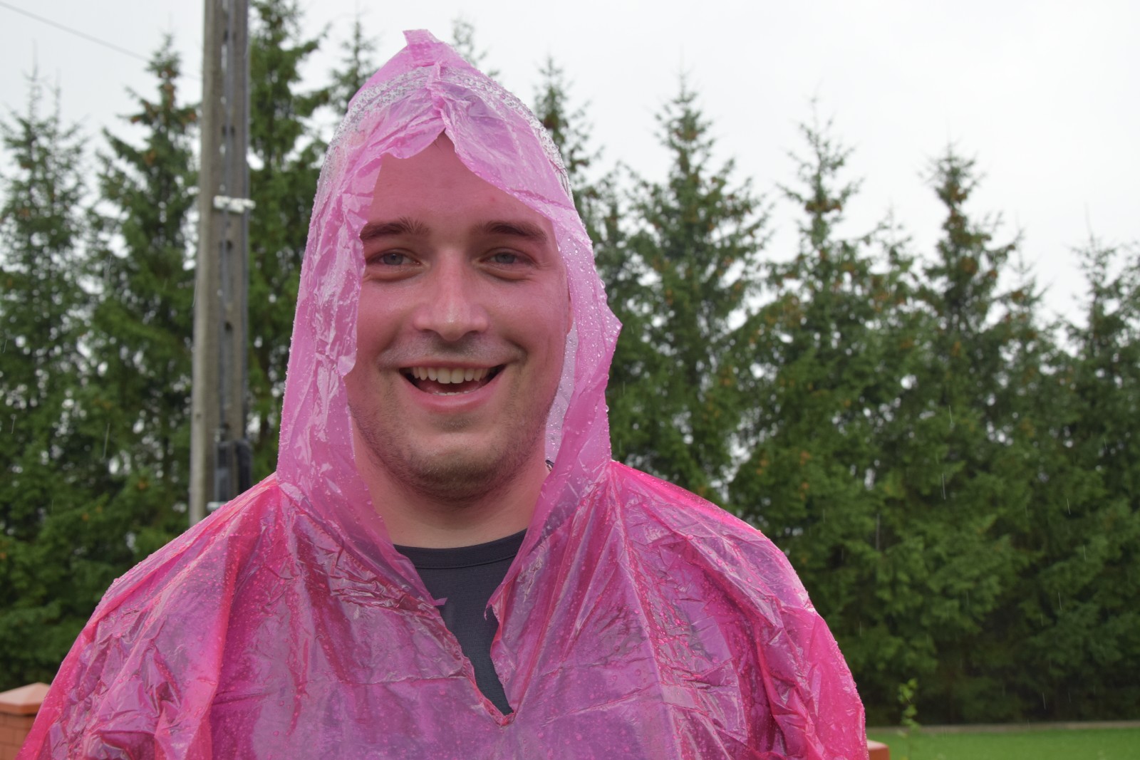 Nadrobiwszy turystyczne zaległości z najbliższej zamku okolicy, zjedliśmy jeszcze obiad i postanowiliśmy ruszyć w dalszą drogę. Decyzję bardzo ułatwiły chmury nadciągające ze wschodu, które w lepszym wariancie oznaczały deszcz, a w gorszym burzę. Do dzisiejszego celu naszej rowerowej wędrówki – Rzeszowa – wciąż pozostawało nieco ponad 20 kilometrów. Wszystko wskazywało na to, że kolejny raz nam się uda, ale… się nie udało. 😀 Deszcz nas dopadł, najpierw z wolna kapiąc, a chwilę później odkręcając prysznic do końca. Nie pozostało nic innego jak zatrzymać się, przywdziać pelerynki i przeczekać „żywioł”. 😉 Sakwy zdały egzamin i wody do bagaży nie puściły, a i nas peleryny całkiem dobrze osłoniły. Na tyle, że byliśmy w stanie wciąż w niezłym komforcie dotrzeć do Rzeszowa, do naszej Cioci, która dziś zechciała nas ugościć. Na nic sieniawskie pałace, wobec gorącej zupy w rodzinnych progach! 🙂