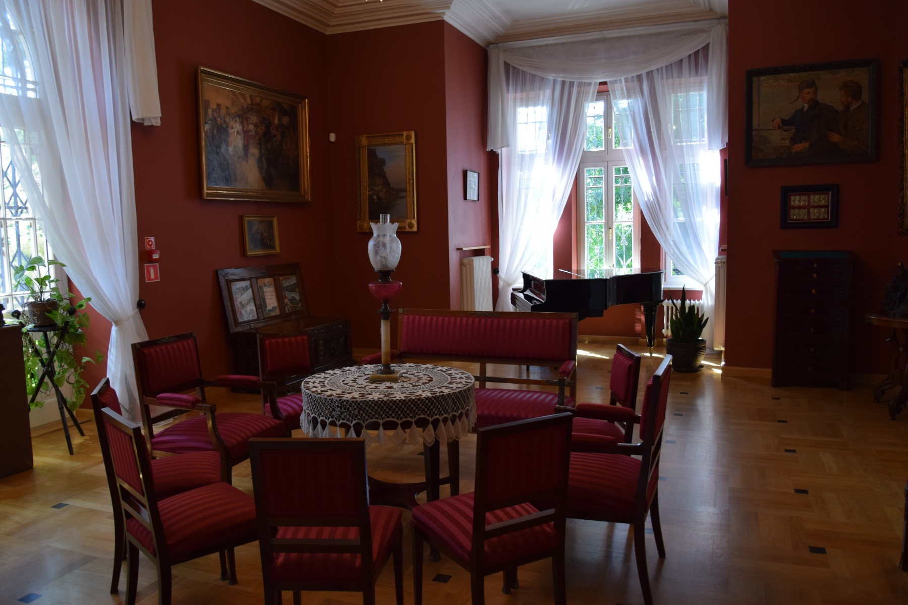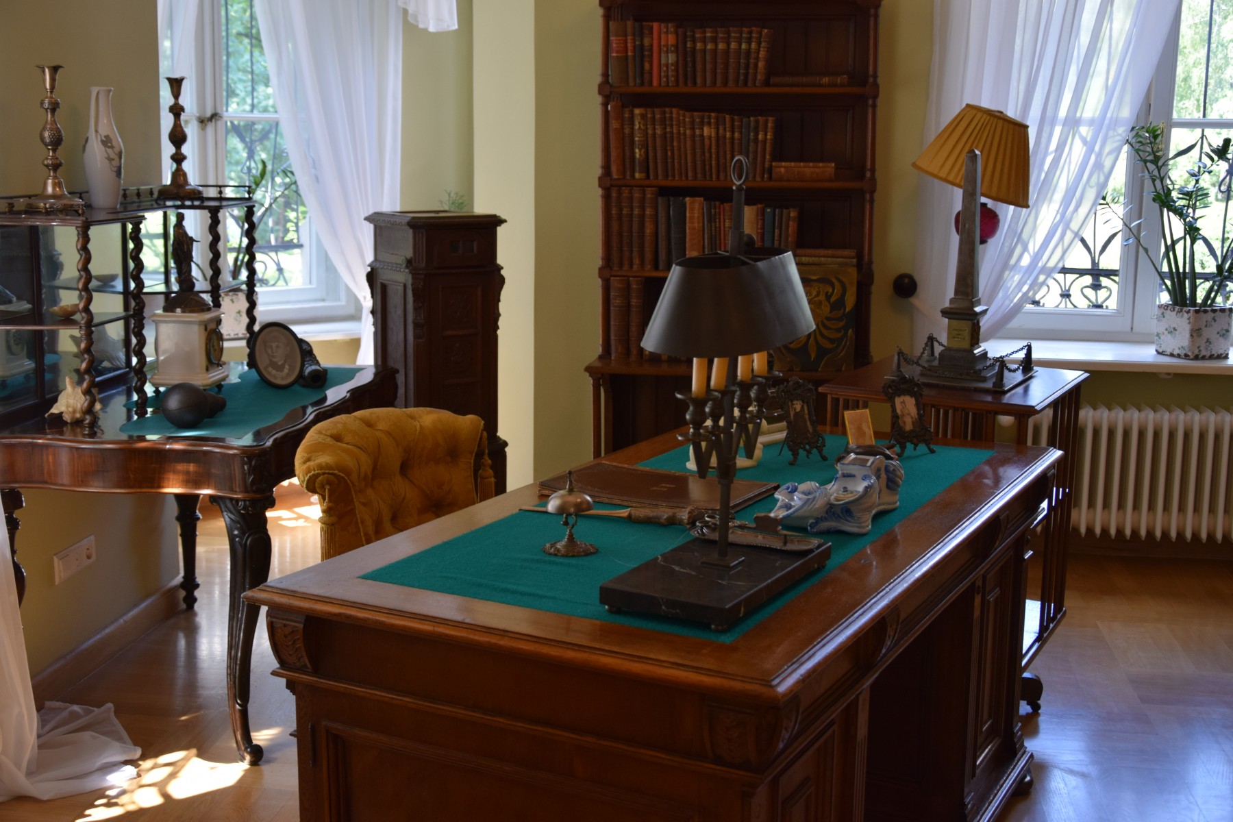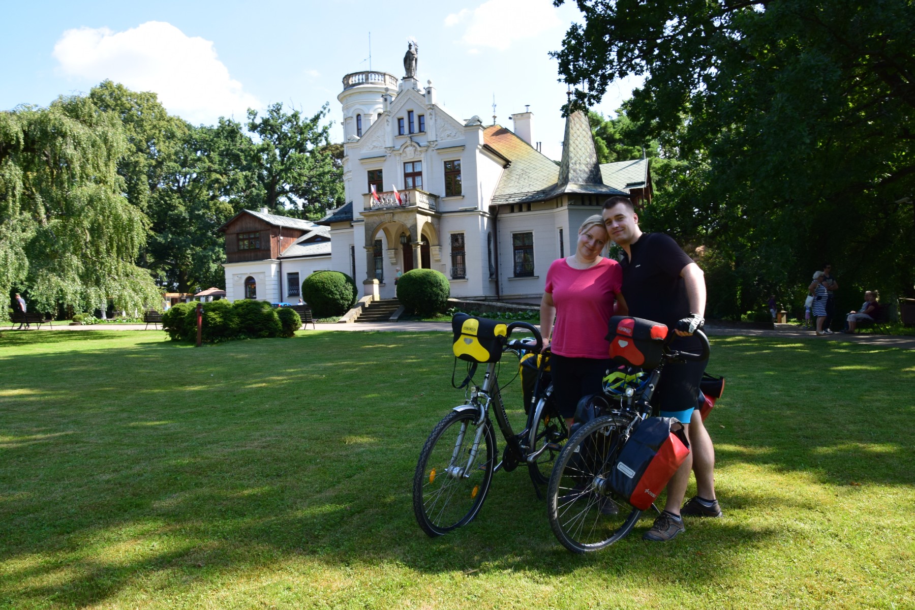 I wreszcie przyszedł dzień wyjazdu i… po prostu zmieniliśmy plany. Skoro z GreenVelo nam w tym momencie nie po drodze, nic nie szkodzi, żeby wykorzystać to jako okazję do nadrobienia turystycznych zaległości w okolicach Kielc. Zamiast jechać na południe wyjechaliśmy zatem na… północ, w kierunku przeciwnym niż pierwotnie zamierzaliśmy! Naszym pierwszym turystycznym celem, był dziś pałacyk Henryka Sienkiewicza w Oblęgorku ufundowany dla niego w zbiórce społecznej w dowód wdzięczności całego narodu za pokrzepianie serc rodaków w mrocznych czasach rozbiorów. Miejsce na szczęście do dziś zachowało związki z pisarzem i jako oddział Muzeum Narodowego w Kielcach upamiętnia życiorys wielkiego Polaka. Zwiedziliśmy zatem interesującą ekspozycję i pokrzepieni na ciele (świetny obiad autorstwa Sylwii zabrany z Wrocławia!) oraz duszy obraliśmy kurs na kolejną atrakcję, której do tej pory nie mieliśmy okazji razem na rowerach odwiedzić.