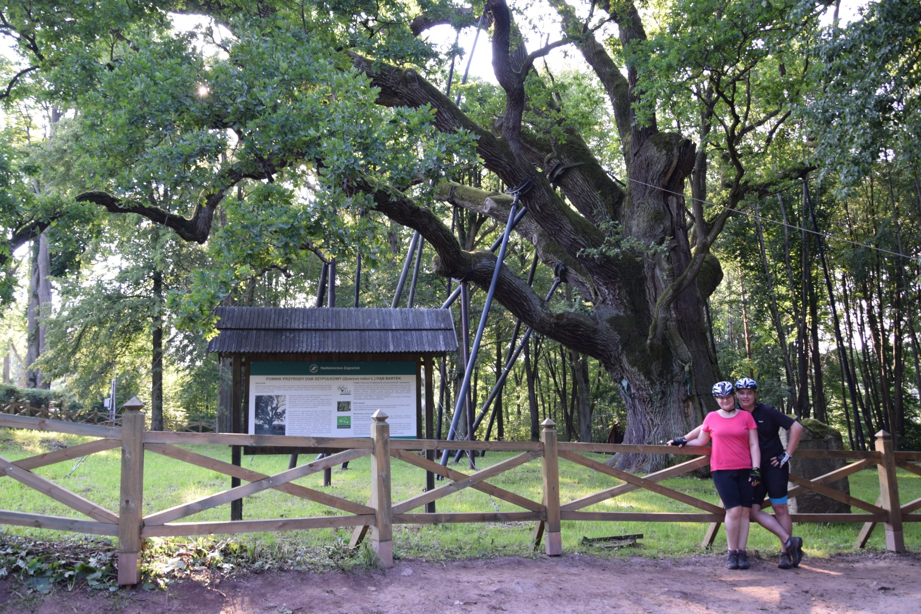 Z Samsonowa był już tylko rzut beretem do najprawdopodobniej najsłynniejszego staruszka i drzewa w Polsce zarazem. Dąb Bartek powitał nas swymi rozłożystymi konarami, jakby wyciągając je do uścisku – na szczęście są podparte, w przeciwnym wypadku niechybnie by się złamały. Bartek nie jest najstarszym drzewem w Polsce (starsze są Chrobry na Pomorzu i Bolesław na Dolnym Śląsku), ale z pewnością najpopularniejszym, a to za sprawą przedwojennego plebiscytu – wtedy to, pozbawiony jeszcze konkurencji z „Ziem Odzyskanych” świętokrzyski matuzalem wygrał z metryką szacowaną nawet na 1200 lat! Według ostatnich badań ma ich jednak nieco mniej, bo tylko 654. Pomimo burz, zawieruch, wojen i pożarów przetrwał do dziś i wciąż jest żywym świadkiem naszej historii – 1000 lat życzymy!
