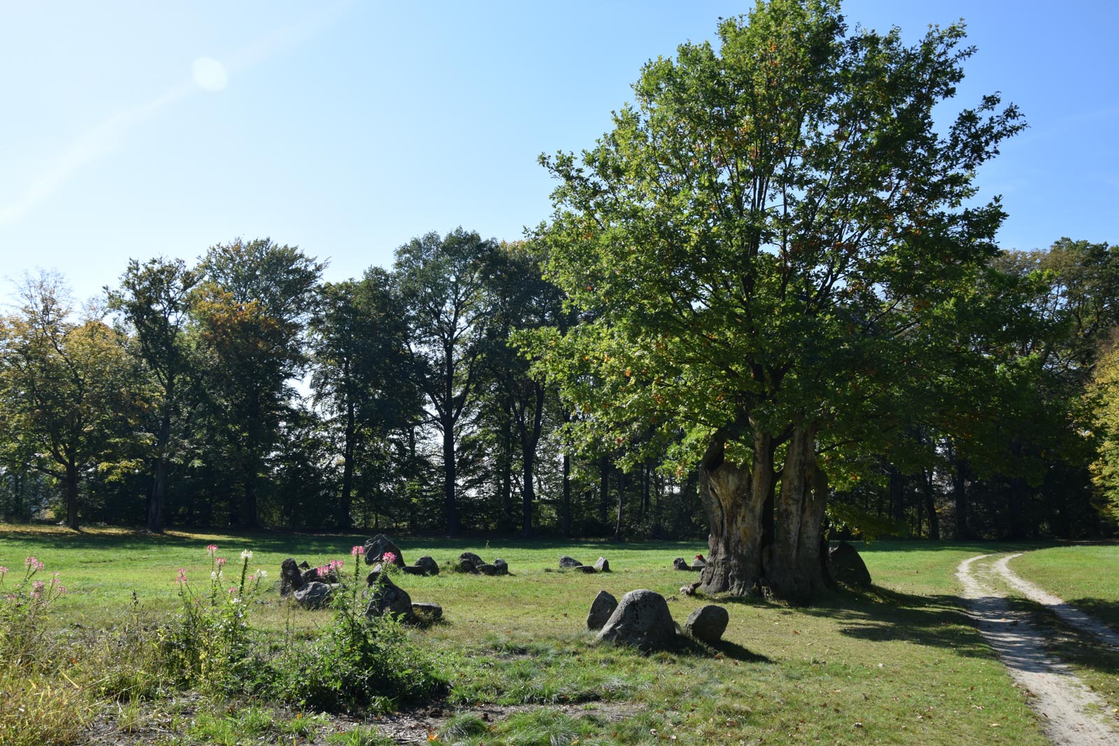 Założony przez księcia Hermanna von Pückler-Muskau w latach 1815-1844 park powitał nas rozległą siecią urokliwych alejek, jakby stworzonych do przemierzania rowerem. Szybko ruszyliśmy na objazdową wycieczkę i niemałą frajdę sprawiało nam mijanie kolejnych grup turystów pieszych, którzy mieli zapewne ambitne cele zobaczyć jak najwięcej, ale rozmiar parku już na starcie ich dyskryminował – po prostu jak zwiedzać Park Mużakowski, to tylko na dwóch kółkach! Po niemieckiej stronie radzą sobie jeszcze bryczkami… ale wrażeń zapachowych nie polecamy. 😉