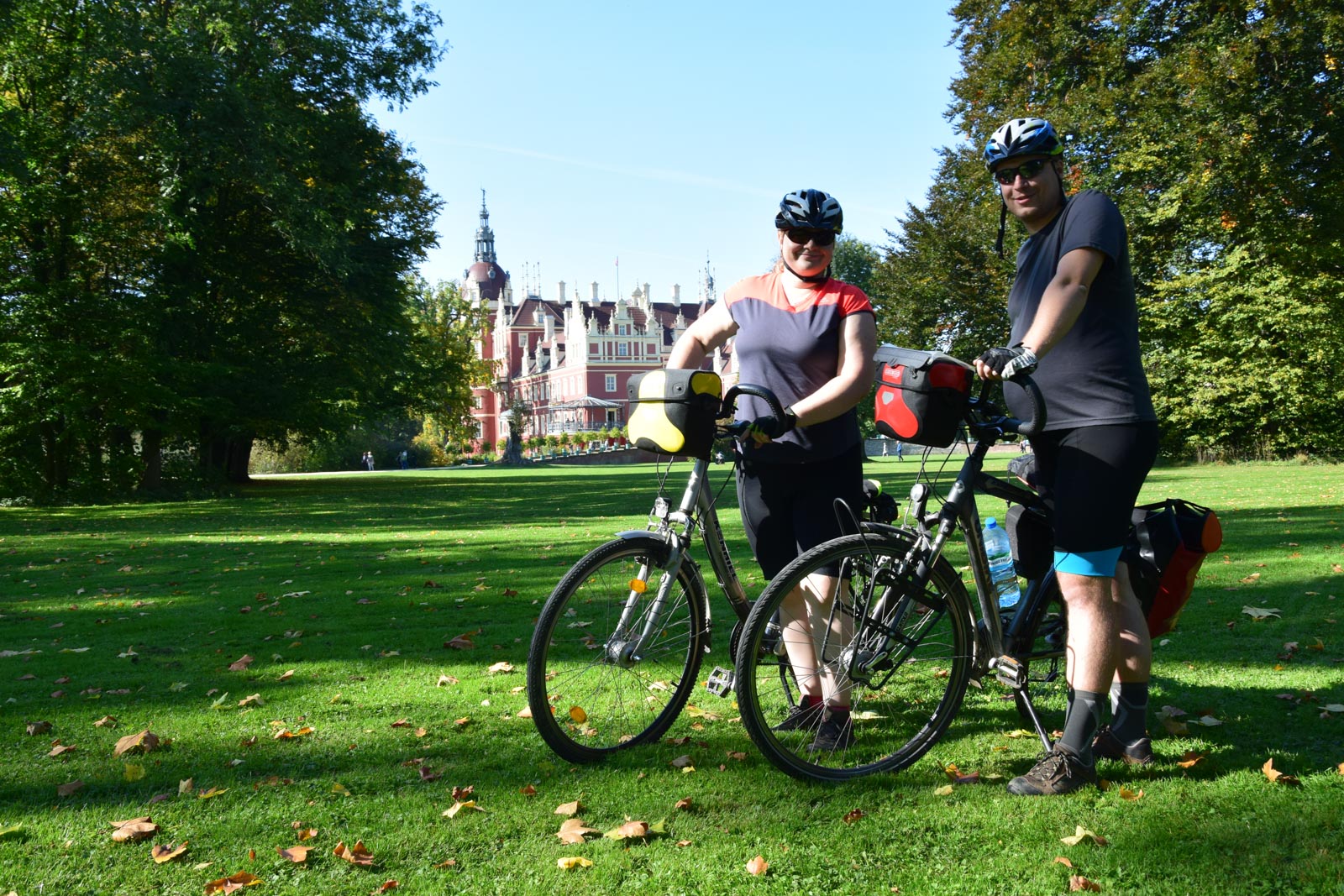 Ostatniego dnia września 2017 roku wstaliśmy naprawdę wcześnie, jak na nasze sobotnie standardy po całym tygodniu pracy, i ruszyliśmy przetestować niedawno nabyte urządzenie do transportu rowerów na naszym automobilu – bagażnik rowerowy. Debiutuje się tylko raz, dlatego zdecydowaliśmy się na wycieczkę z rozmachem, żeby solidnie przetestować sprzęt, a ponadto odwiedzić naprawdę warte zobaczenia miejsce. Pogoda była również ku temu idealna, dlatego obraliśmy kierunek na zachód, ku województwu lubuskiemu i położonej przy samej granicy polsko-niemieckiej miejscowości Łęknica. Główny cel turystyczny wycieczki mógł być zatem tylko jeden – znajdujący się na Liście Światowego Dziedzictwa UNESCO Park Mużakowski.